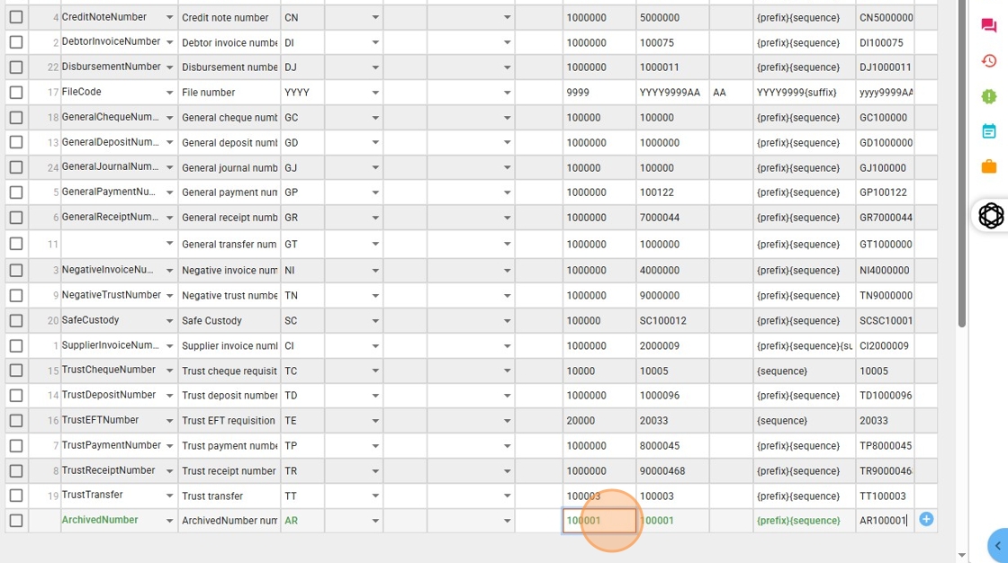 - This ensures the archive number will appear in the format AR100001, where: