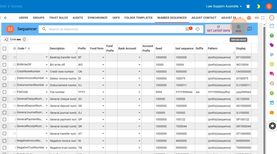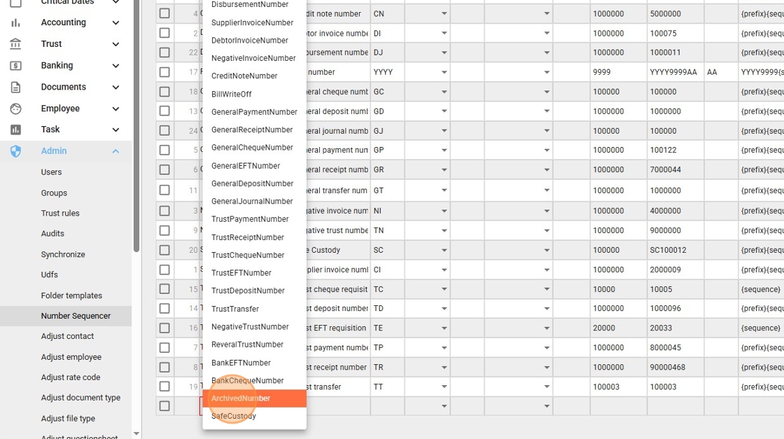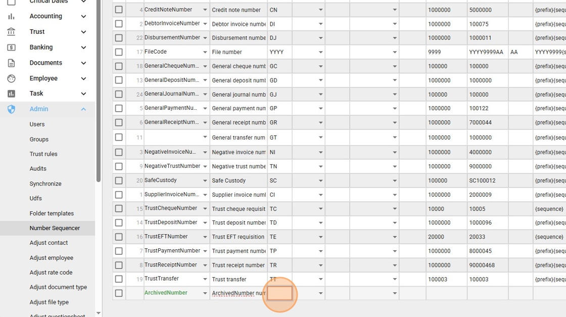 - If no archive numbering appears in the list, click “Add” to create a new numbering sequence.