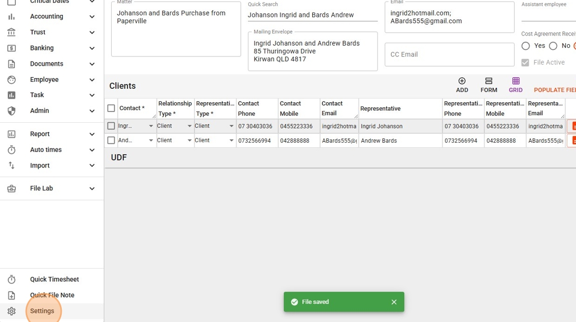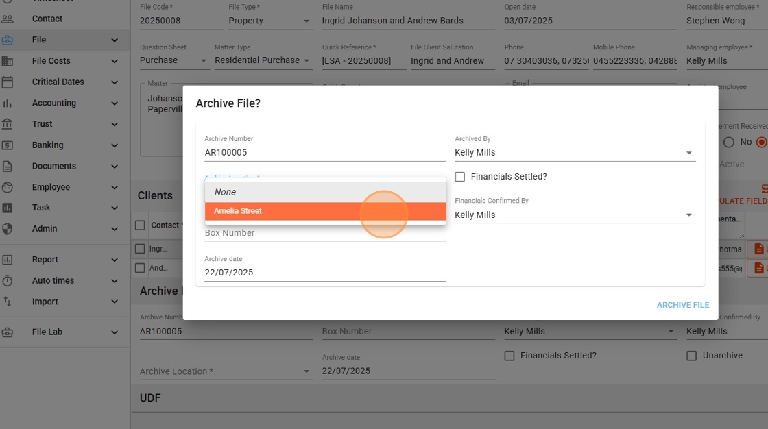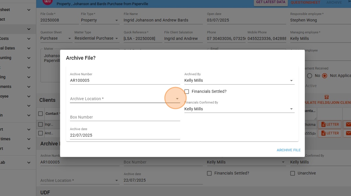 - The Archive File Number is automatically generated based on the firm’s settings.