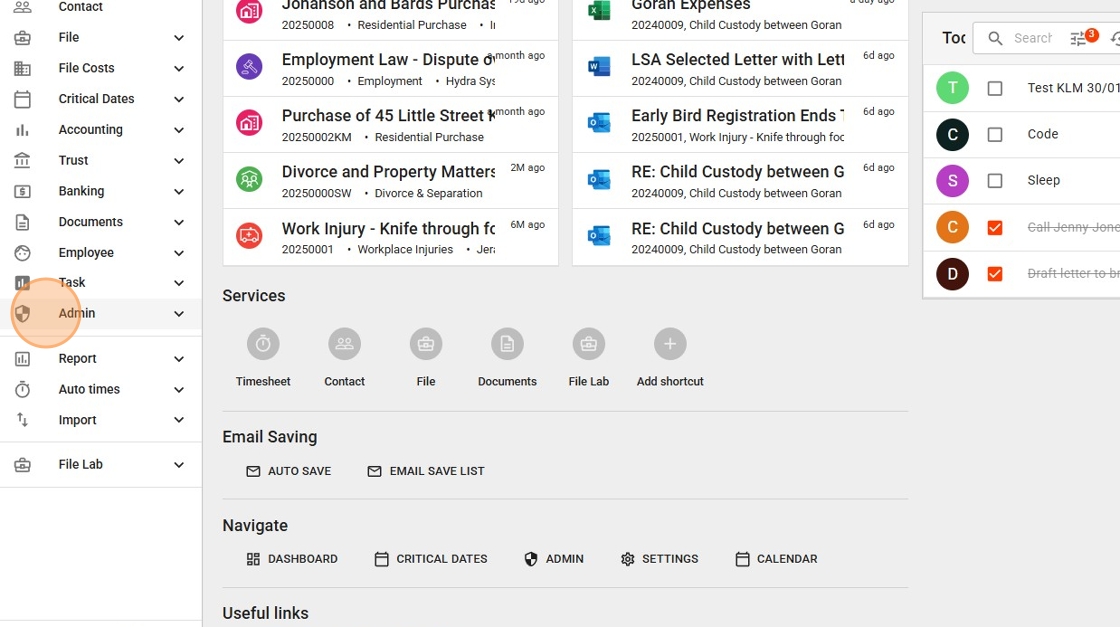 - Go to the Admin section via the left-hand main menu.