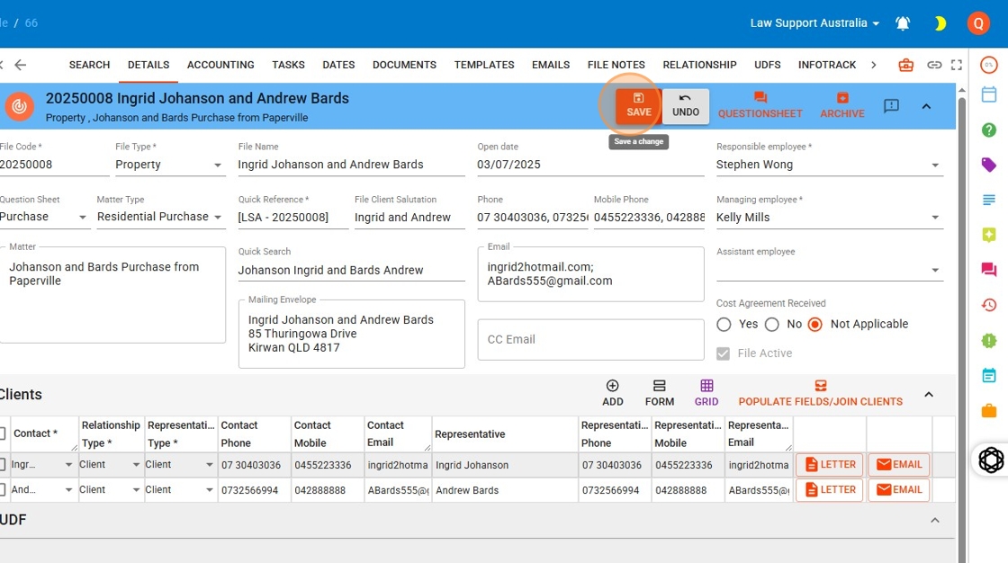 - Either press Tab or click elsewhere on the screen to activate the Save button.