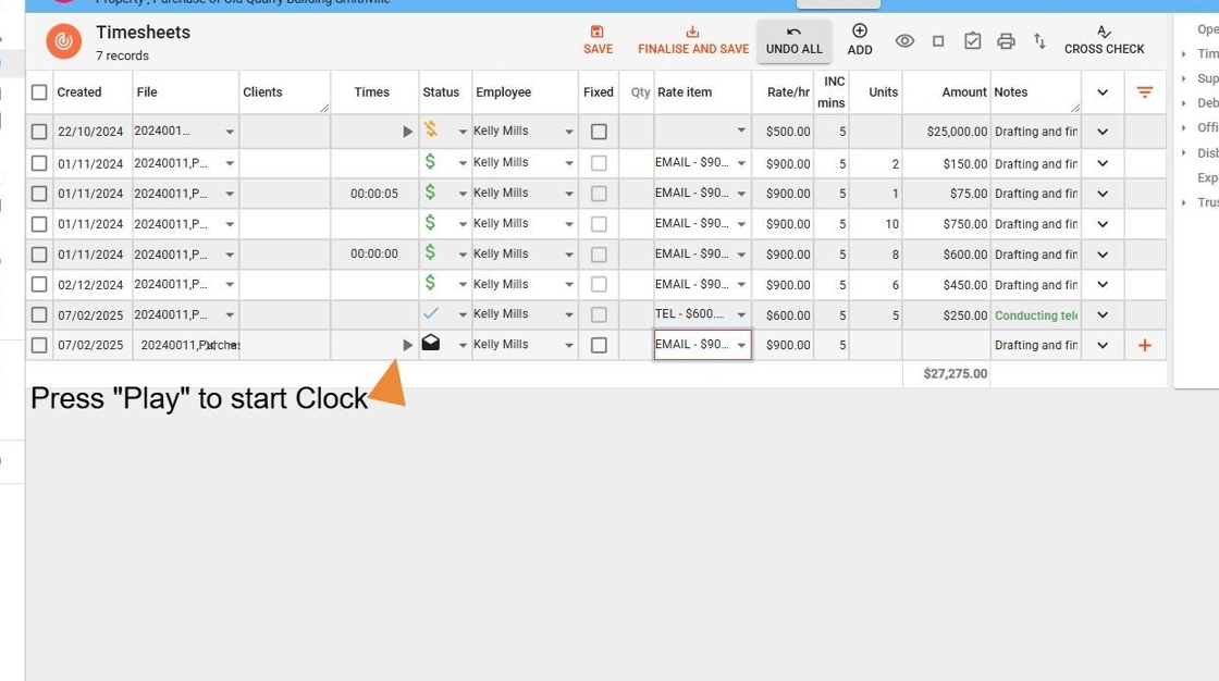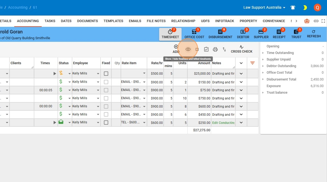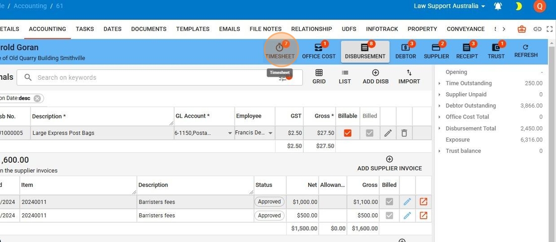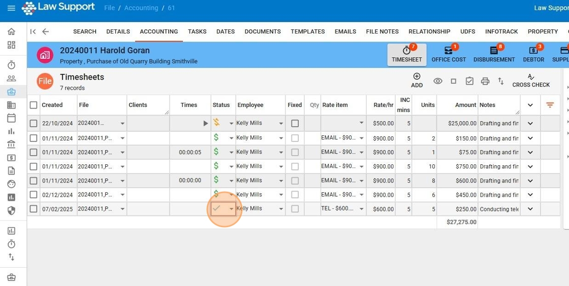 6. Select the Timesheet Icon to navigate to timesheets for a file.