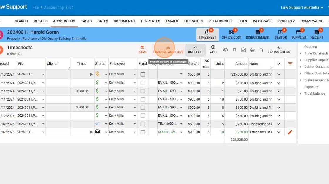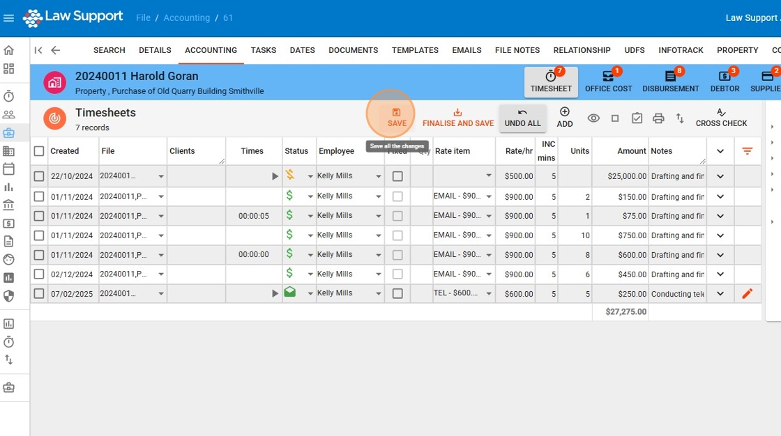 - This includes edits across multiple timesheet lines, ensuring all updates are recorded at once.