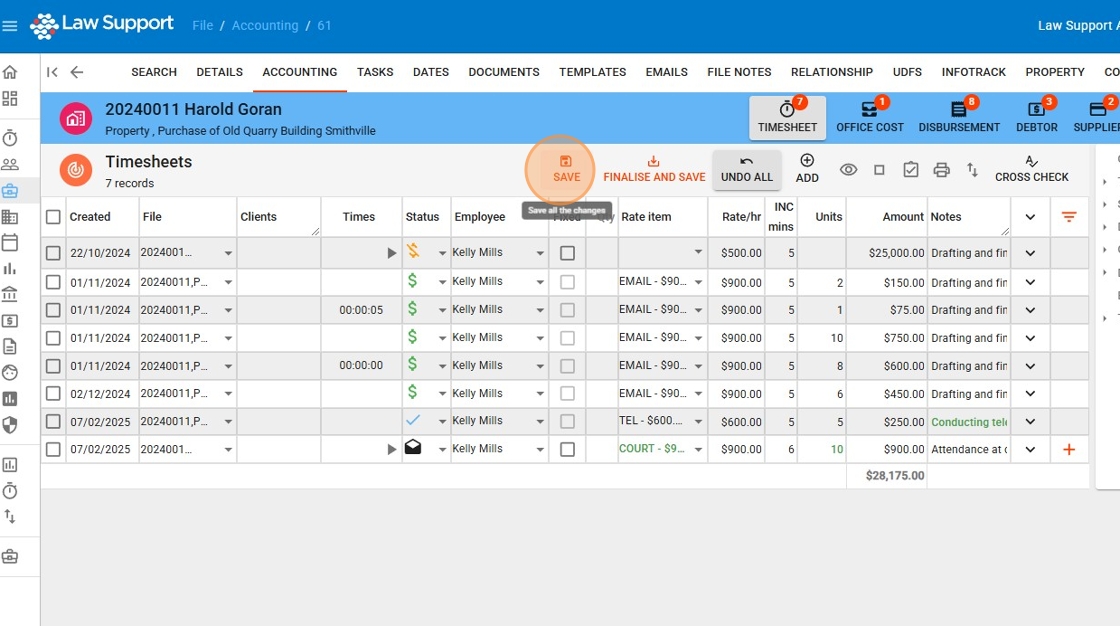 8. Saving Edits Across Multiple Timesheets