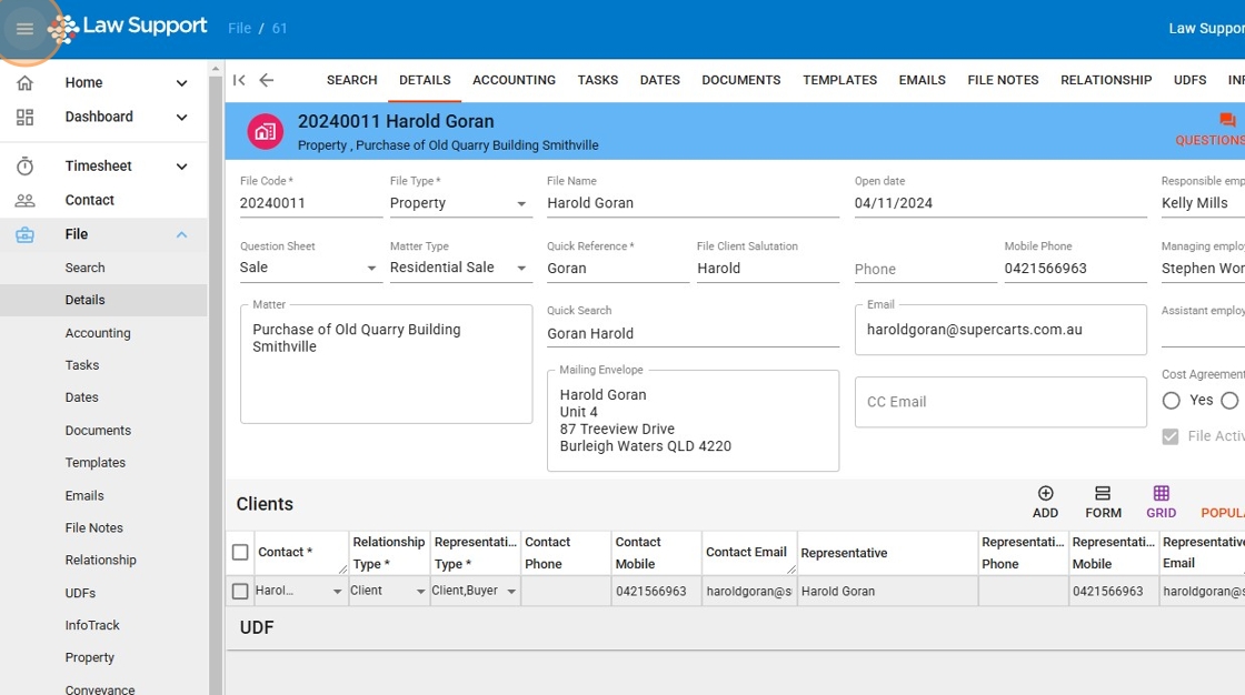 1. Navigate to https://app.lawsupport.com.au/file/