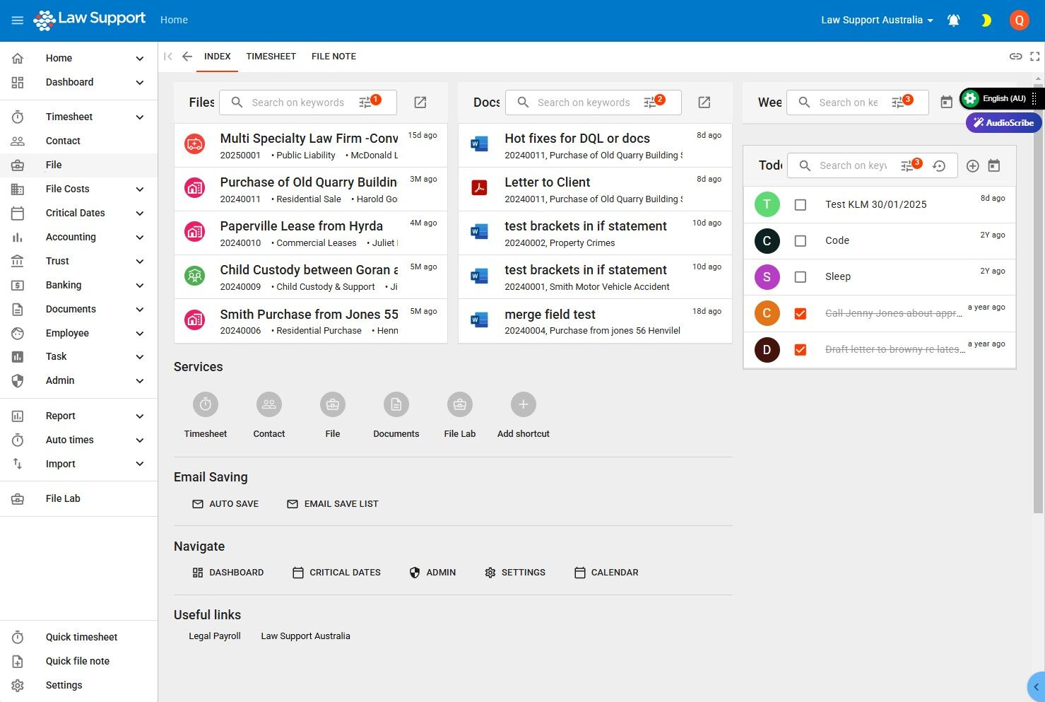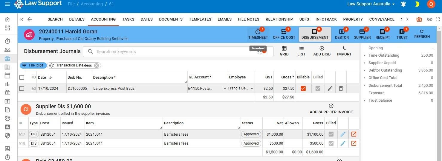 1. Navigate to https://app.lawsupport.com.au/file/