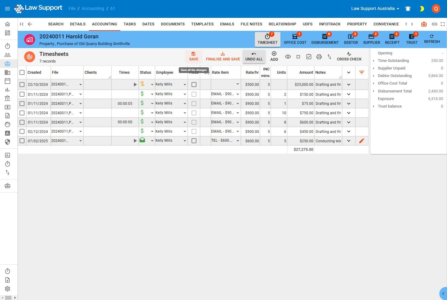 - This includes edits across multiple timesheet lines, ensuring all updates are recorded at once.