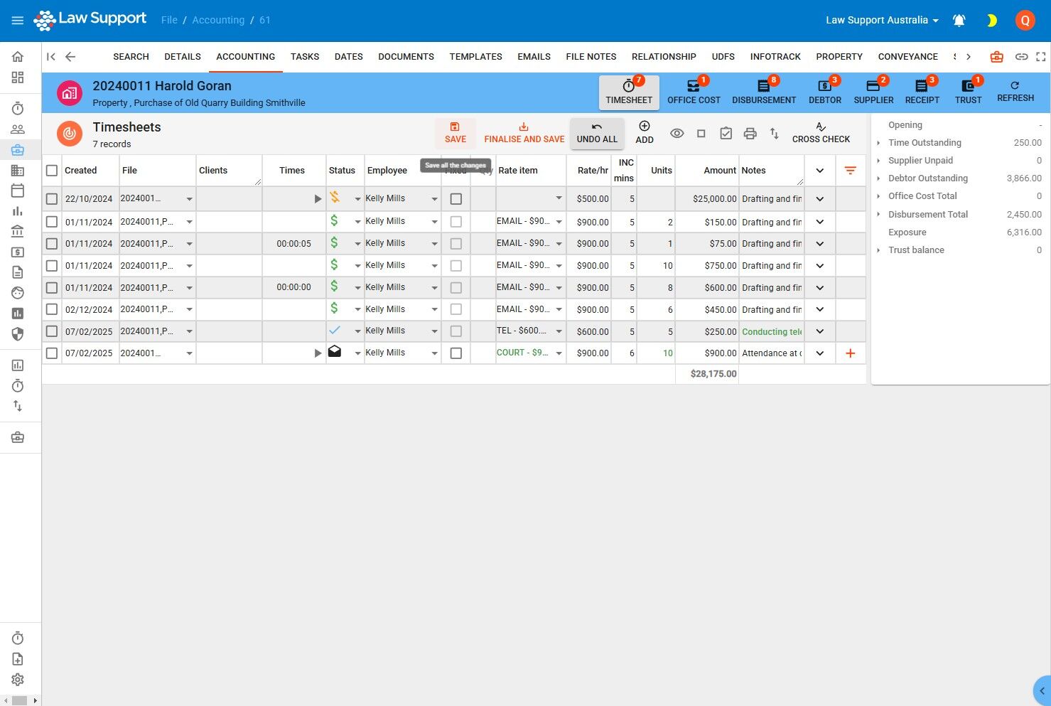 8. Saving Edits Across Multiple Timesheets