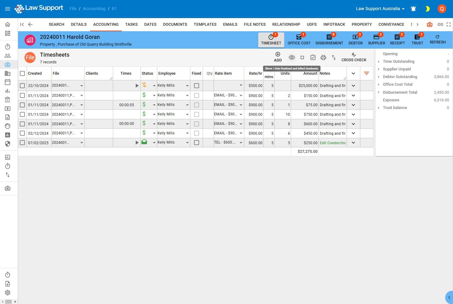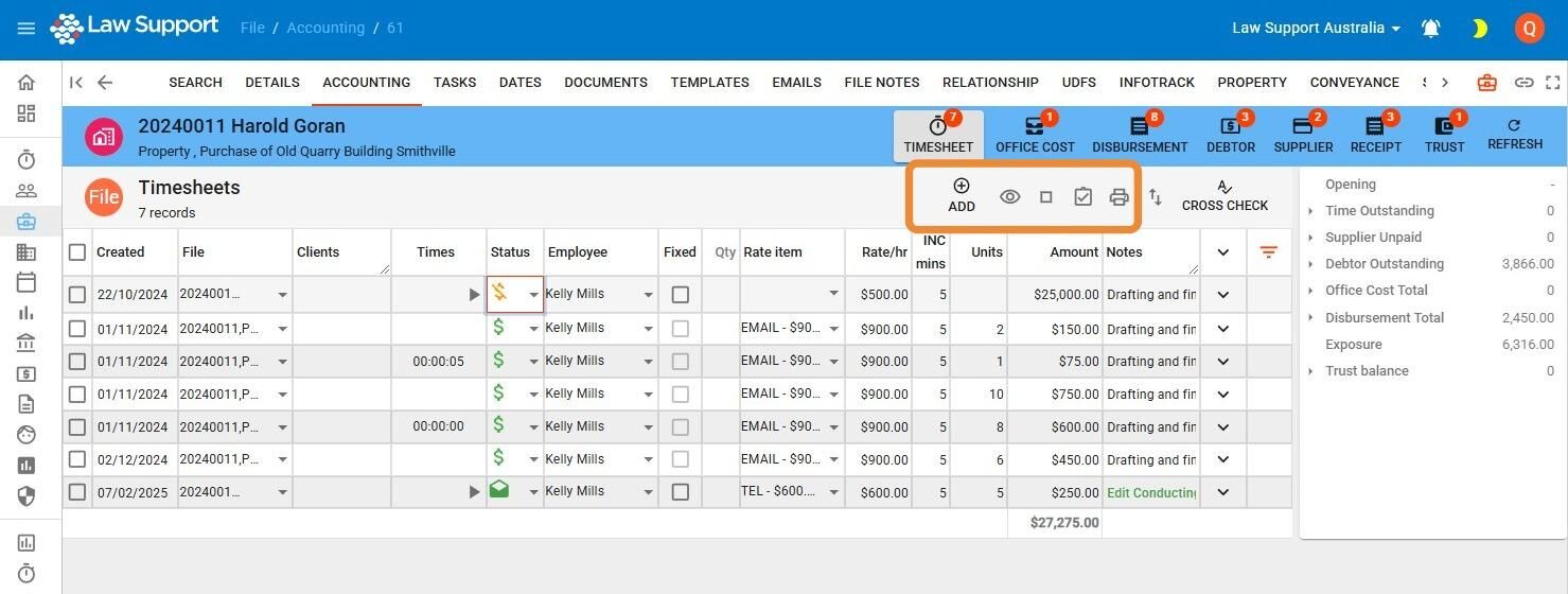 6. Select the Timesheet Icon to navigate to timesheets for a file.