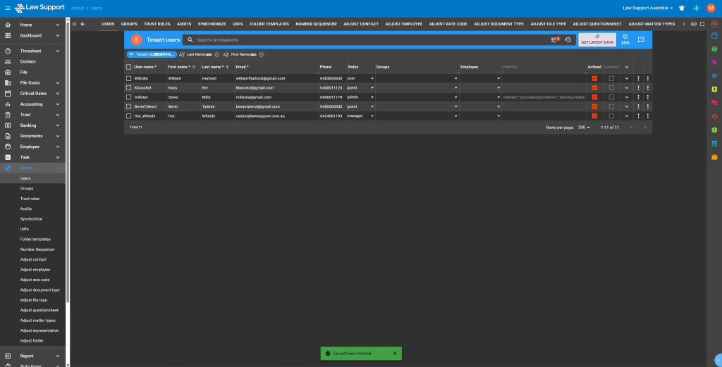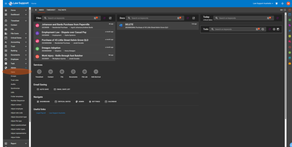 In the final step you have to now give the user that was created the right permissions for your firm. So go to the “Admin” menu and then to “Users”