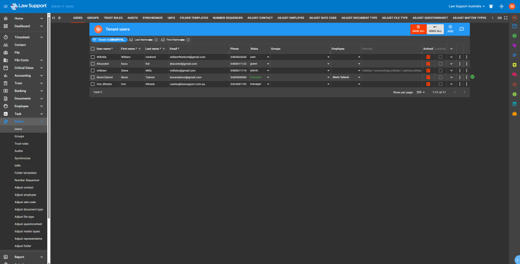 Law App requires users to have their own personal login which you then need to invite them to your Law Firm.