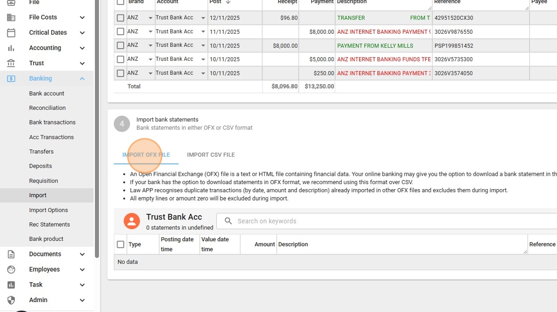 If you’re unable to use automatic bank feeds with our Banking API integration, Law App allows you to manually import bank statements using either OFX or CSV files. This step-by-step guide covers:
