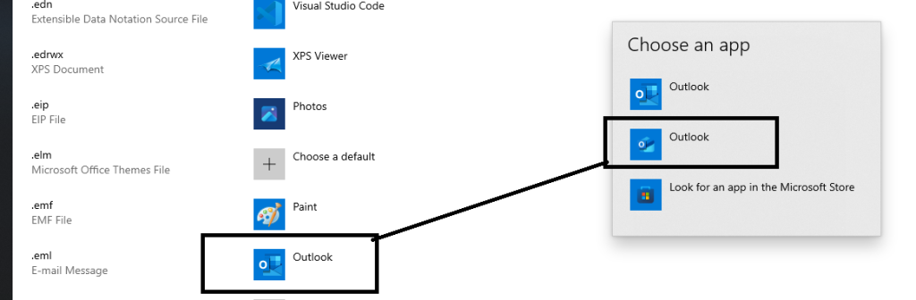 You can update your Windows default app setting for .eml files by following these steps: