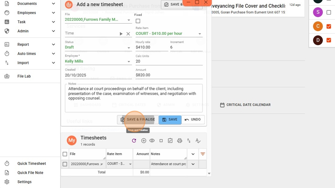 This guide provides a straightforward process for updating file rates and timesheet entries, ensuring accurate billing. By following these steps, users can efficiently set specific rates for employees or rate items on a file, enhancing financial accuracy.