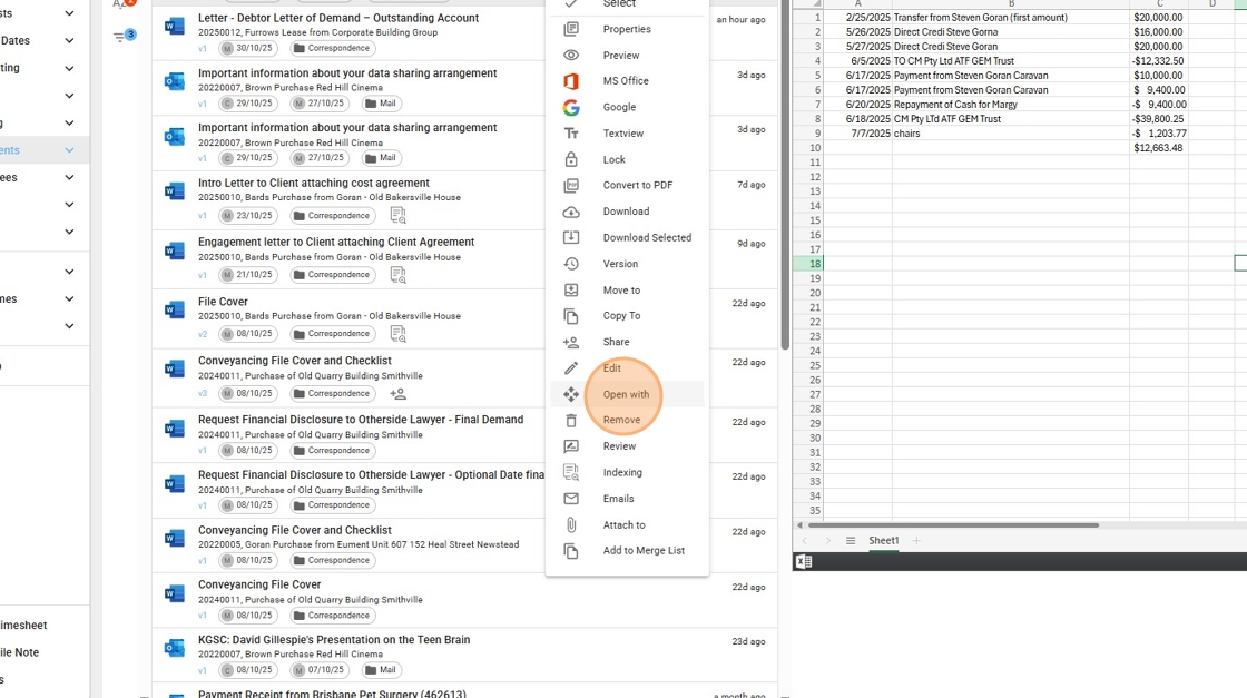 7. Right click on your chosent document